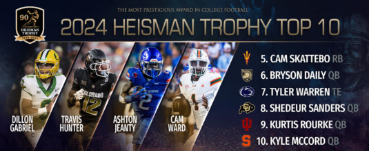 Ashton Jeanty war auch für mich der Spieler, welcher Hunter am nächsten kommt. Wieder kein Quarterback, sondern Running Back. Er hat 309 der ersten Stimmen -> Total 2’017 erhalten.
