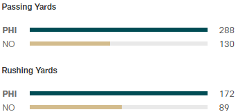 Und es waren nicht nur die Saints, auch die Eagles brachten (gar) nichts zustande: 3 Punkte nach 3 Quarter war die totale Punkteausbeute.