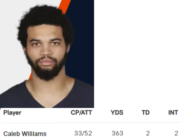 Das gibt keine Entlastung für den Quarterback und macht CHI wohl auch in Woche 4 / 2024 sehr berechenbar.