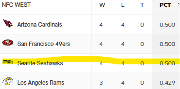 Weil SEA nur ein Divisionsduell hatte und dies gegen SF verloren ging sind sie nur 3.