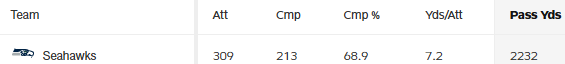 Die Seattle Seahawks sind das Team mit den meisten Pass-Yards
